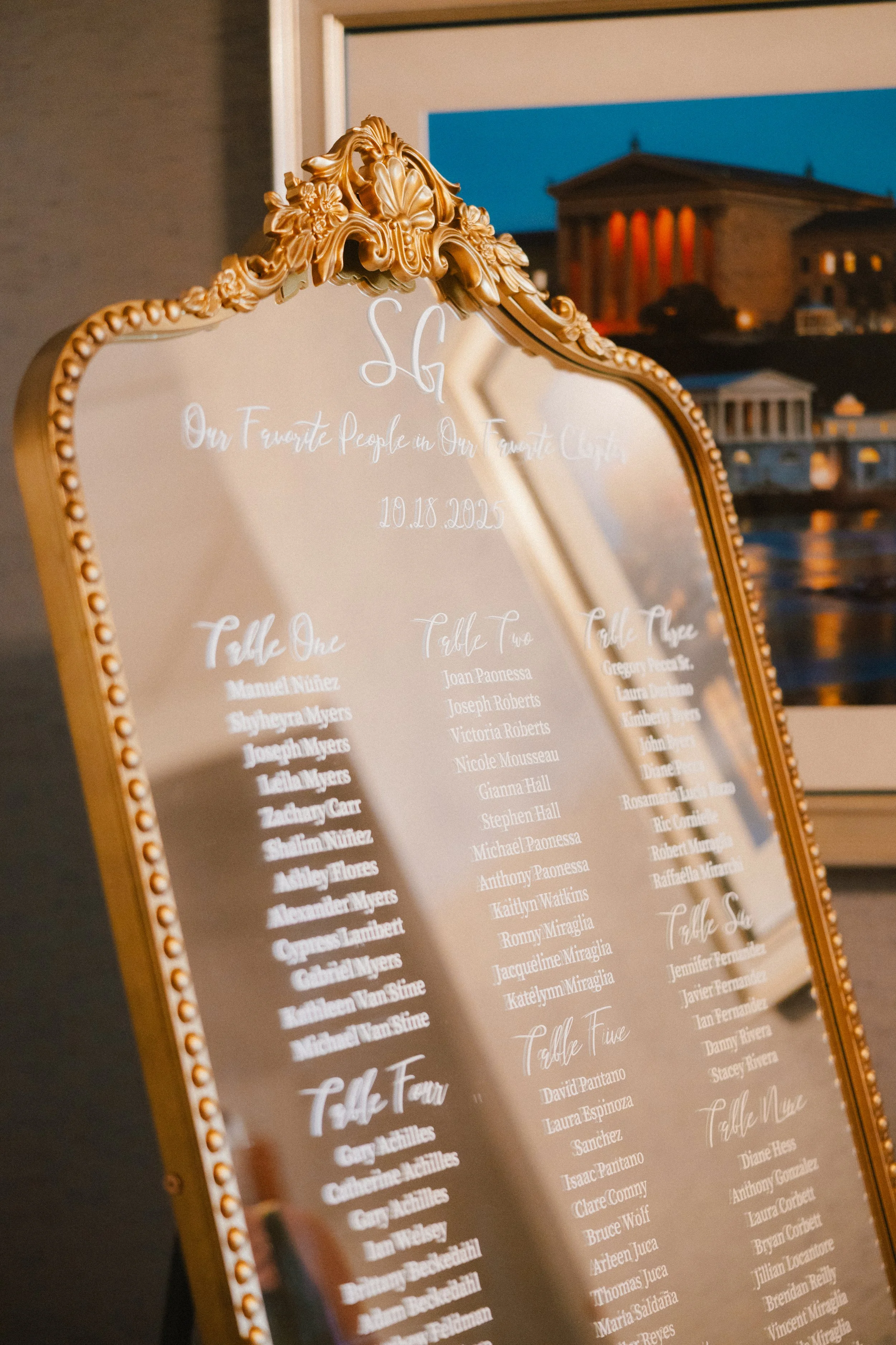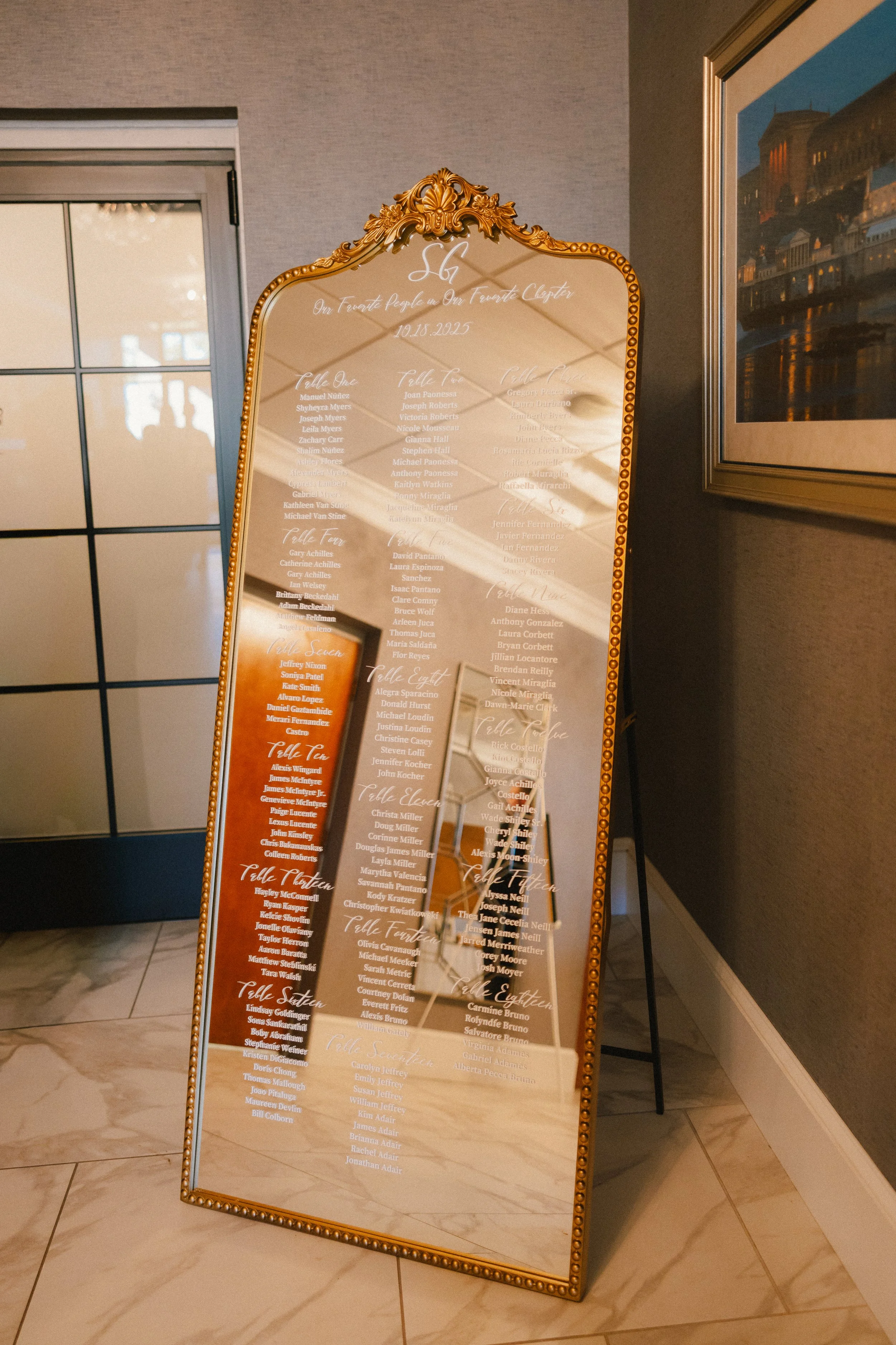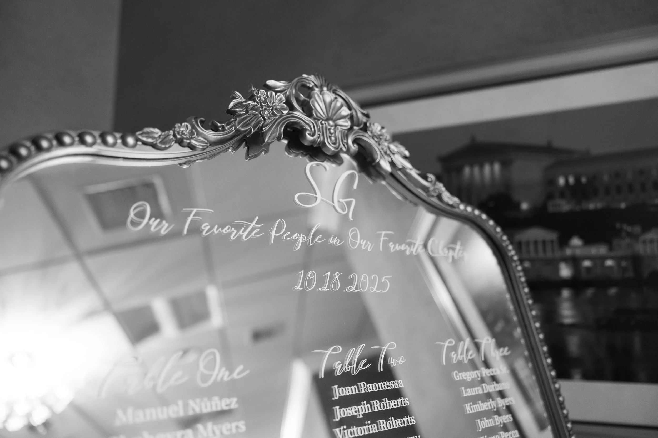 A Mirrored Seating Chart for a Timeless Wedding